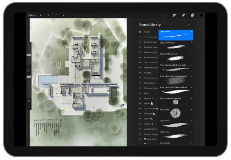 Consigue resultados rápidos y profesionales con estos pinceles diseñados específicamente para Procreate Pro. Incluyen gráficos de árboles, arquitectura, mobiliario de interiores, habitaciones, fachadas.